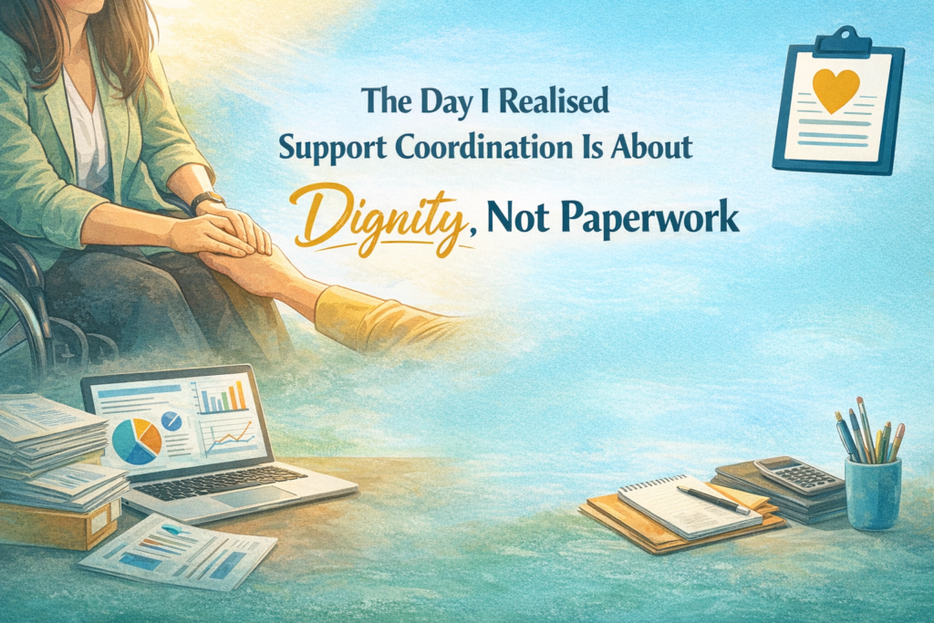 There was a day early in my work as a Support Coordinator when something shifted in me. Until then, I had been focused on the mechanics, such as budgets, categories, invoices, service agreements, plan reviews, Core funding, Capacity Building, reporting requirements. All of it important. All of it necessary. But on that particular day, I sat across from a participant who was exhausted. Not just tired, exhausted from repeating their story, exhausted from explaining their disability, exhausted from systems that required proof before offering support. In that moment, I realised something powerful: support coordination is not about paperwork. It is about dignity.